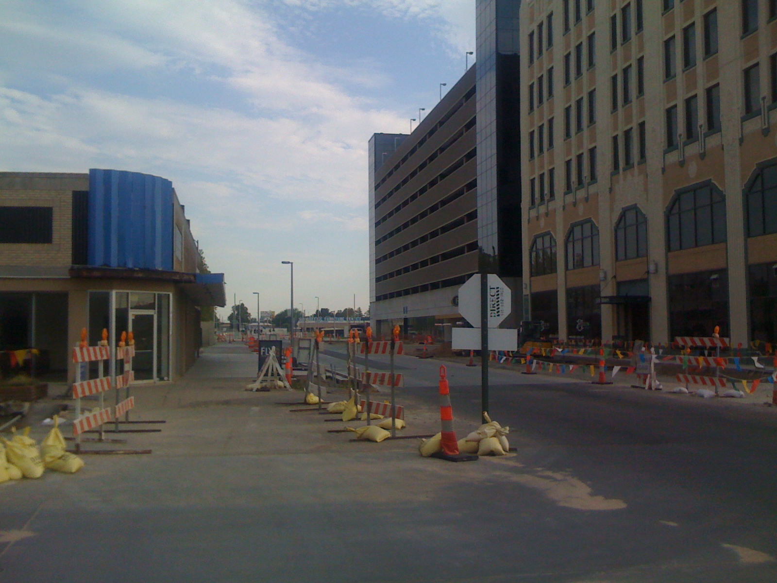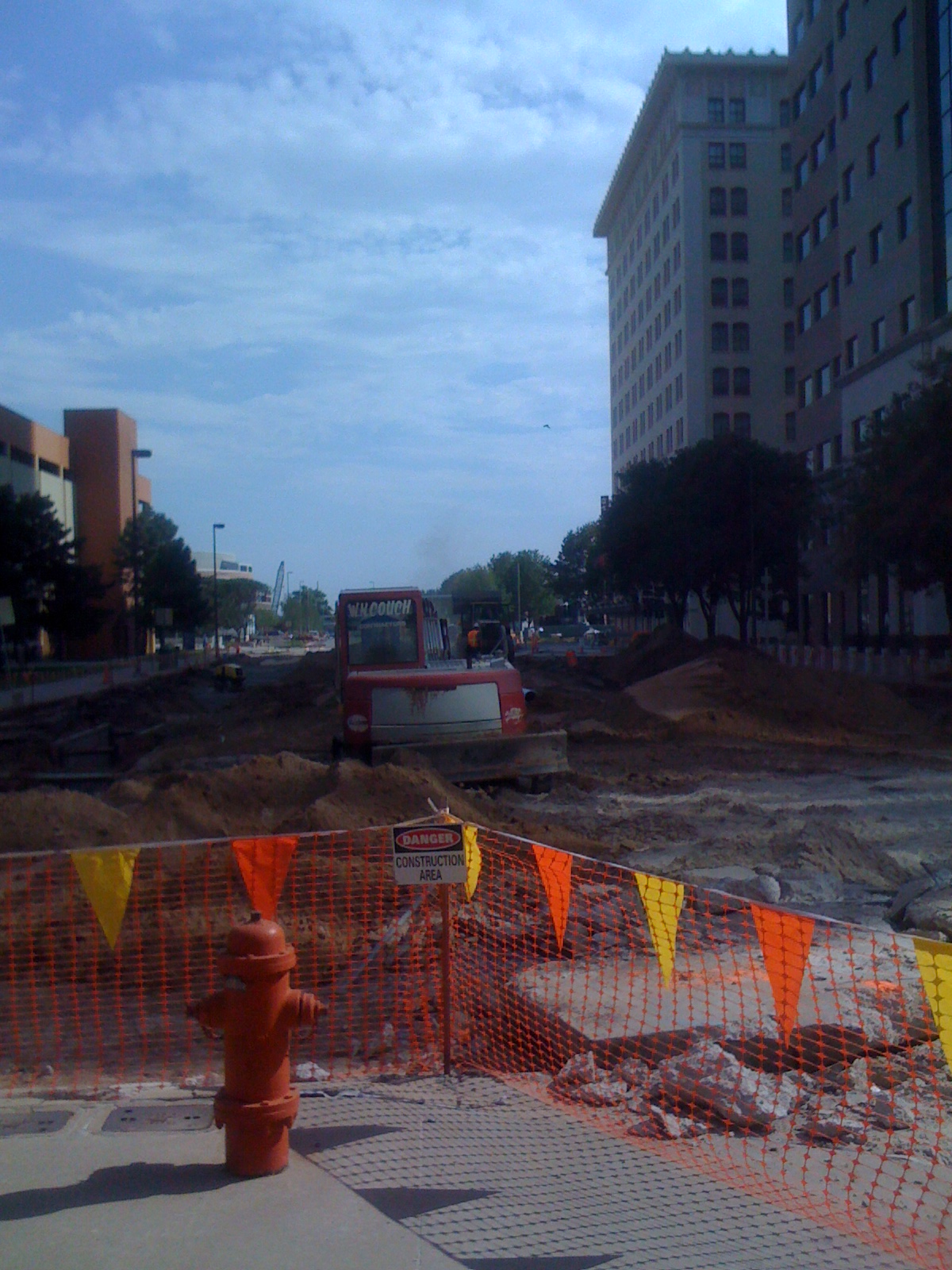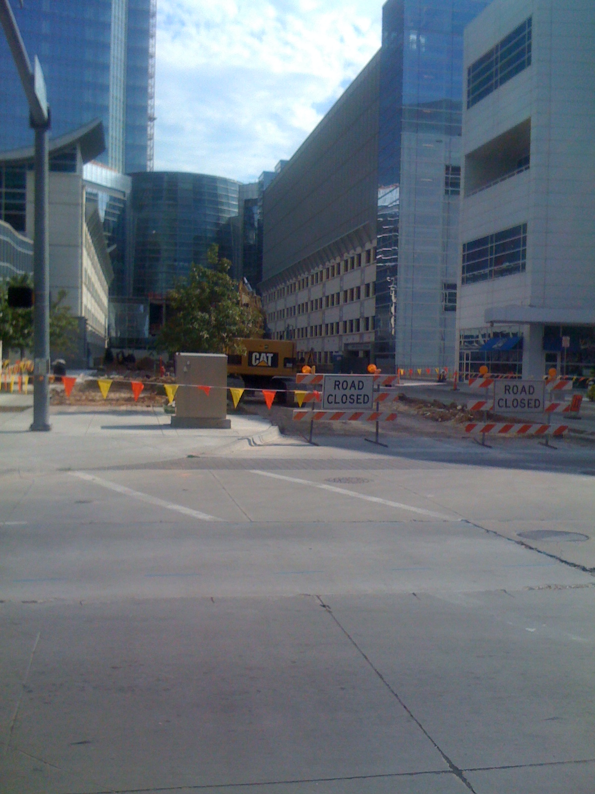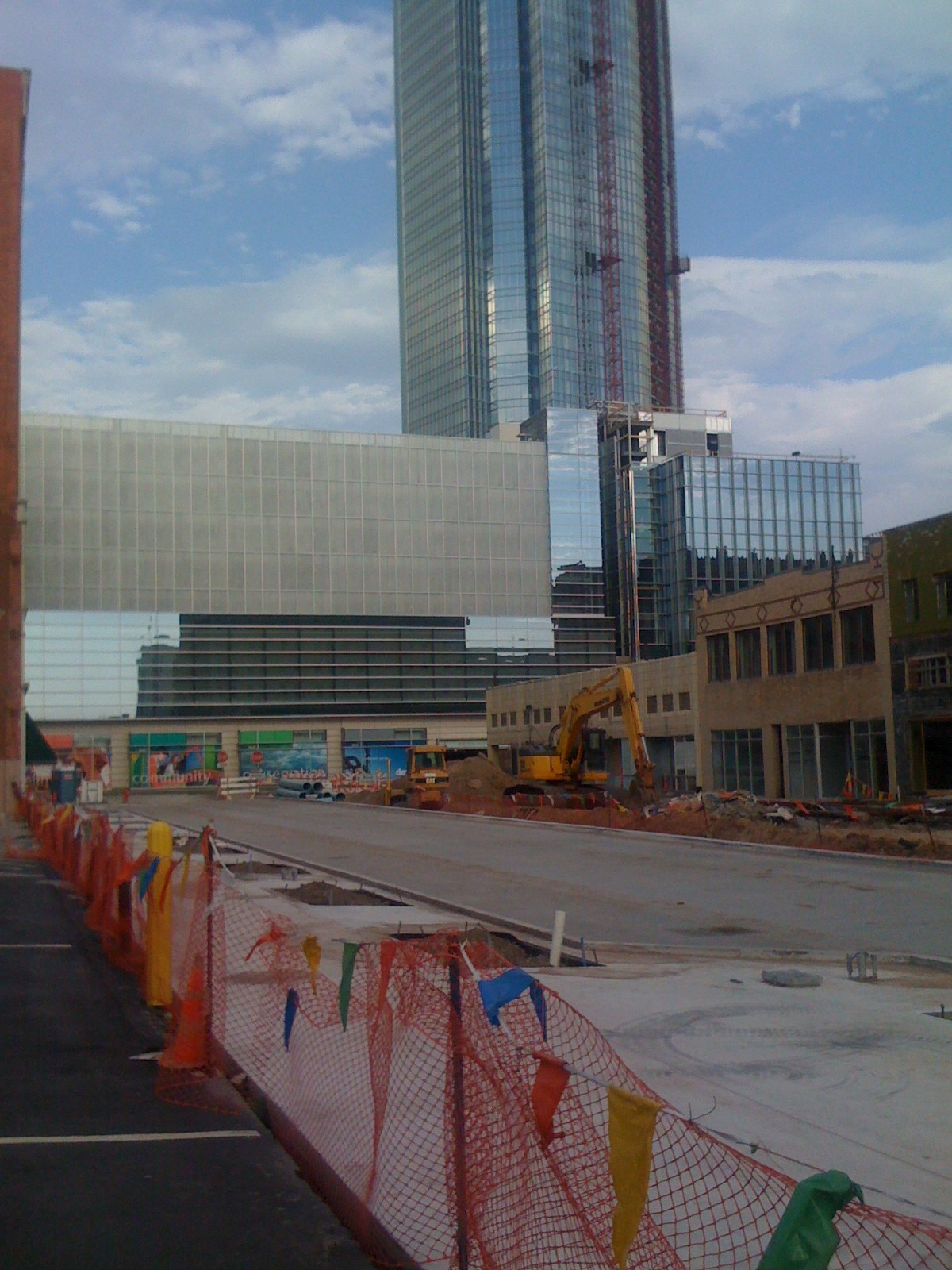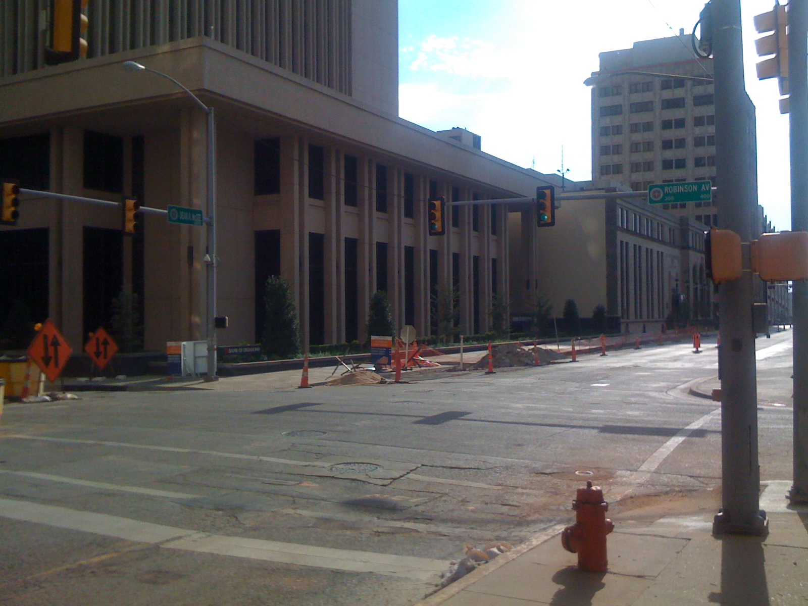 In order to go anywhere, by car or on foot, I must go around or through some sort of construction. And there are other concerns, such as the cut or broken gas line on Robinson on Saturday that caused several blocks to be blocked off. Or the false alarm at 2am that same night near the Devon Tower site. Or the banging, digging, drilling, loading that can be heard at some pretty inconvenient times of the day and night. All in the name of progress.