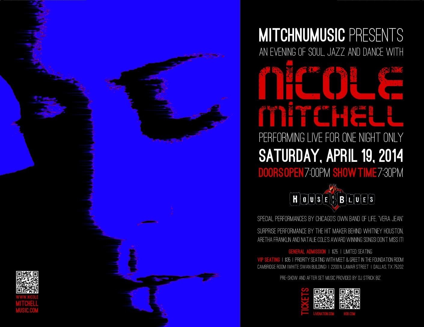 I drove down to Dallas Friday night and, after getting a much needed bite to eat, crashed in my hotel room. The next day, I got to visit with an aunt, cousin, and cousin-in-law in the afternoon, before the real treat: seeing my cousin, Nicole Mitchell, perform at Dallas’ House of Blues. And she absolutely tore the roof off the dump.
