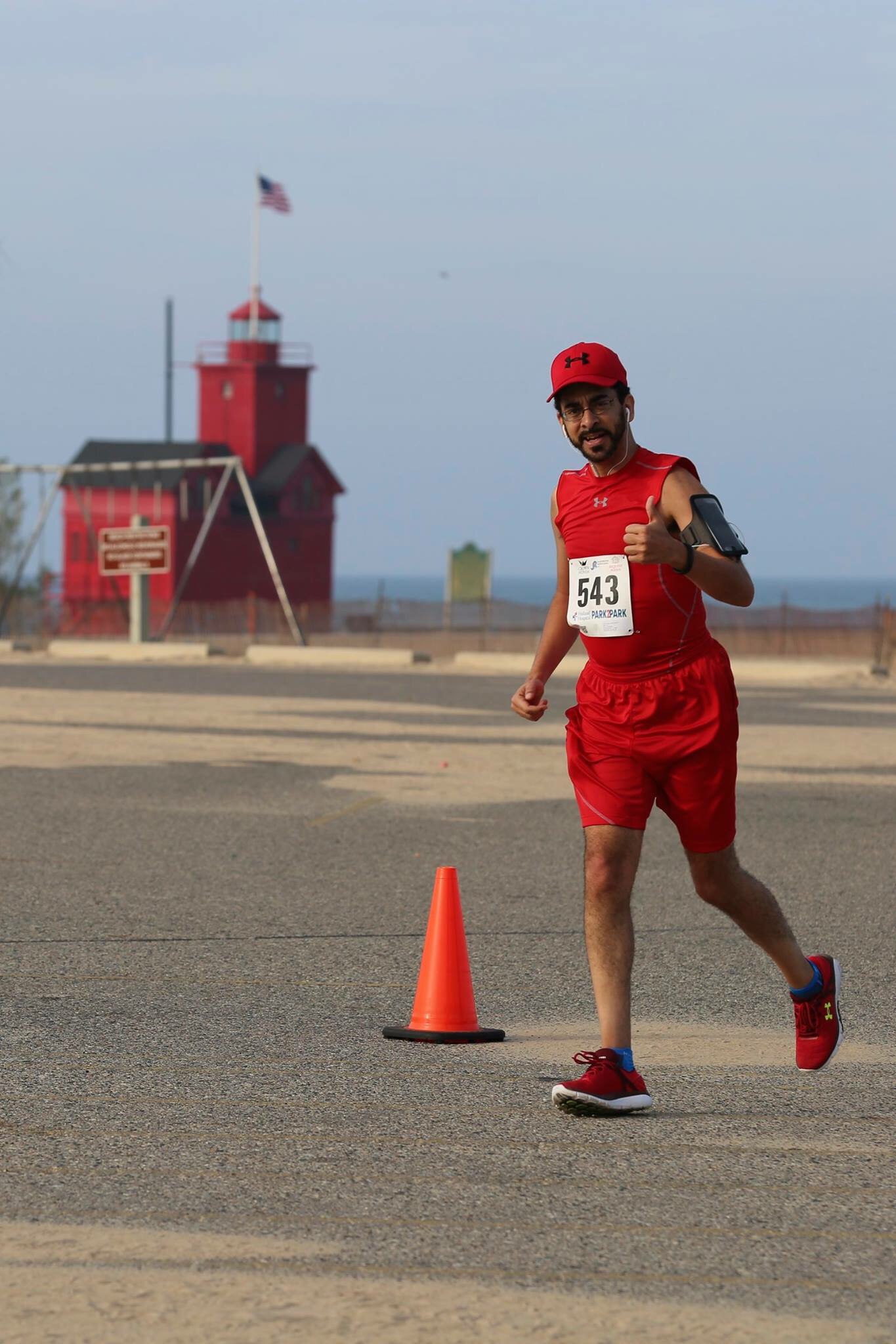 As we neared the 6-mile mark, we entered the state park where the photogenic Holland Lighthouse sits. Having studied the course map thoroughly, I knew this meant I was halfway, and would soon be entering neighborhoods that included some slight hills. The course is pretty flat, overall, but I was beginning to feel some discomfort in my left leg, so even slight hills were something to which I was not looking forward.